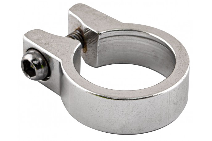 Abraçadeira de selim em alumínio natural, com 1 parafuso Allen, com diâmetro de 28,6 mm.