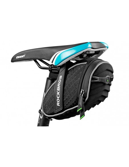 Bolsa para selim Rockbros C16 Beetle, construída em material rígido muito resistente a água e choques, com faixas refletivas noturnas e super fácil de instalar.