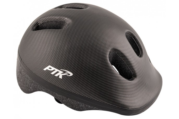 Capacete Ciclista Infantil da marca PTK com regulagem de tamanho e grafismo que imita fibra de carbono para a criançada. Proteção para os pequenos ciclistas.