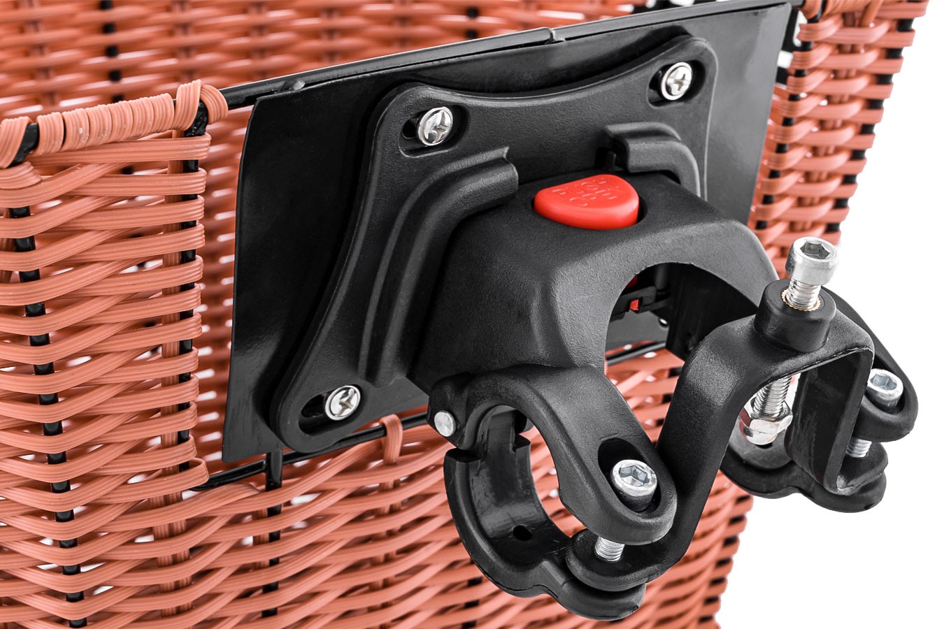 Cesta de plástico inspirada nos modelos construídos em vime, mas oferecendo maior resistência e durabilidade. Com alça e engate rápido, fácil de retirar.