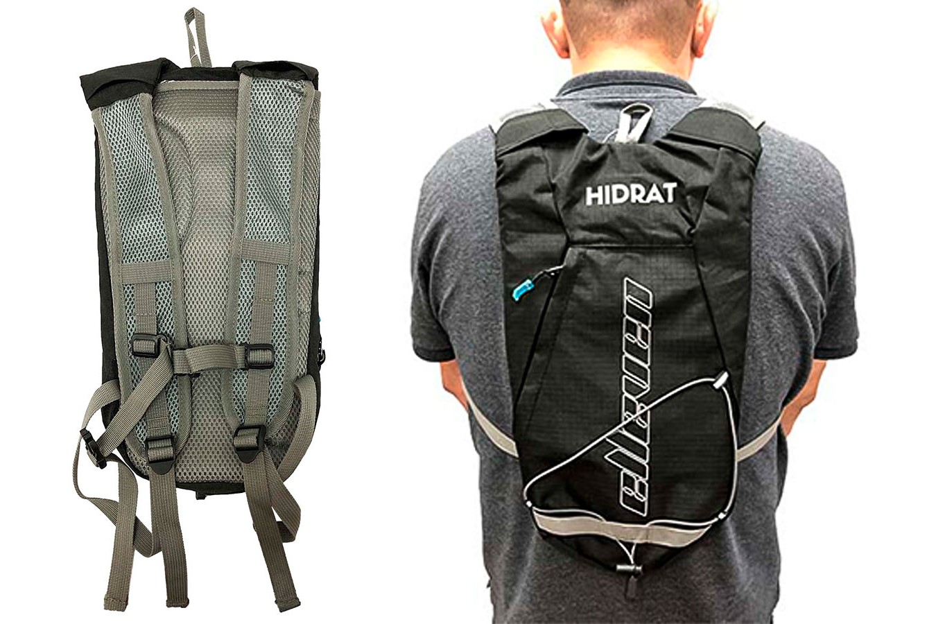 Mochila de hidratação com 3,5 litros de capacidade e reservatório de água com capacidade de até 2 litros. Tem bolso frontal, tecido telado nas alças e costas.