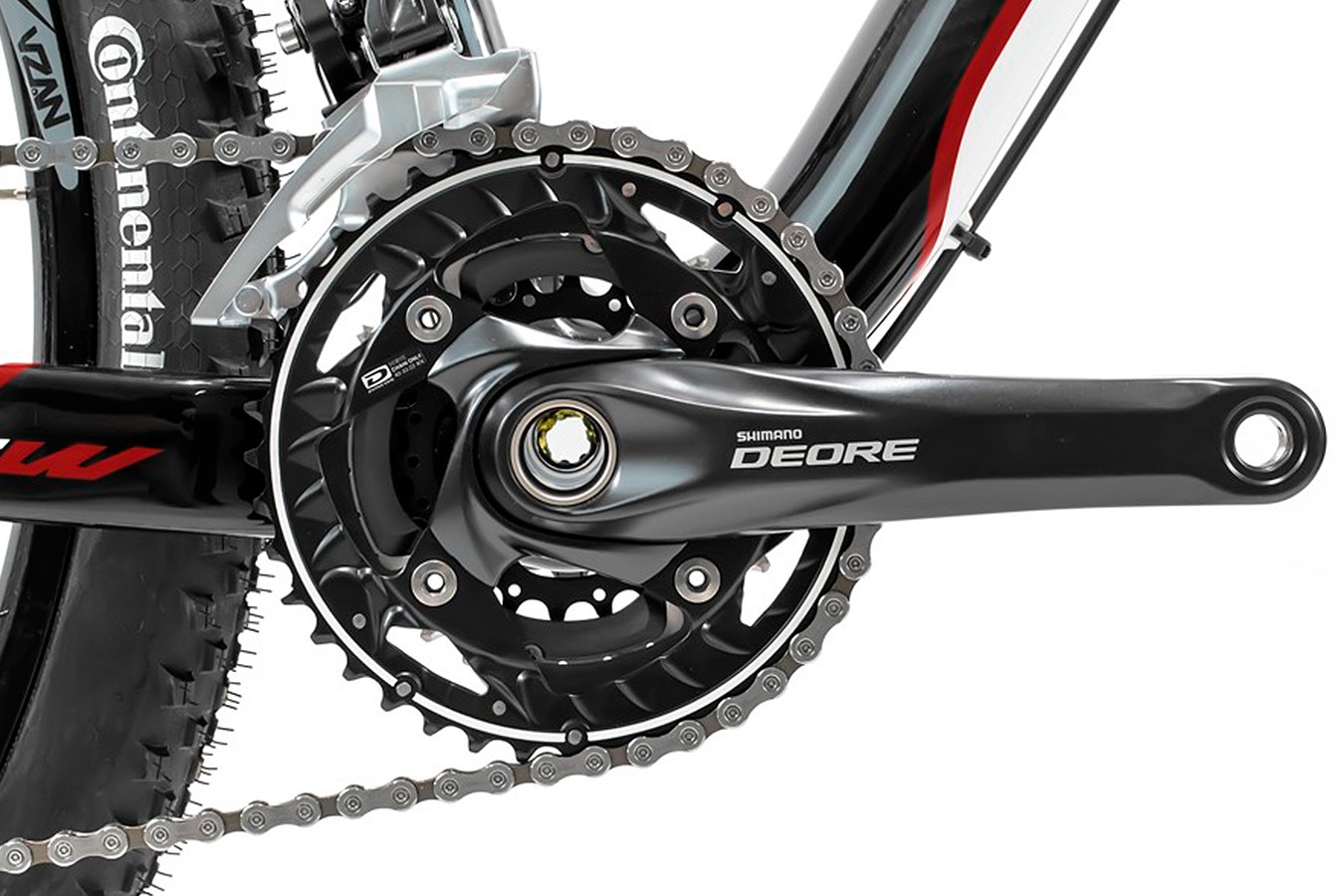 Apresenta todas as características de uma campeã das trilhas e é montada num quadro em fibra de carbono com amortecimento XCM30 Suntour e componentes Shimano de 30 velocidades.