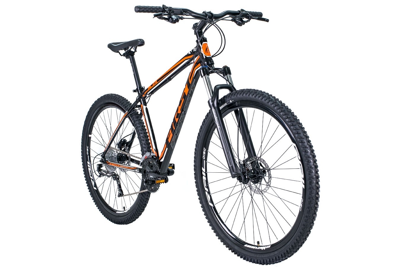 Bicicleta First XC29 aro 29", com quadro em alumínio, 27 marchas. componentes Shimano Altus e freios a disco hidráulicos.