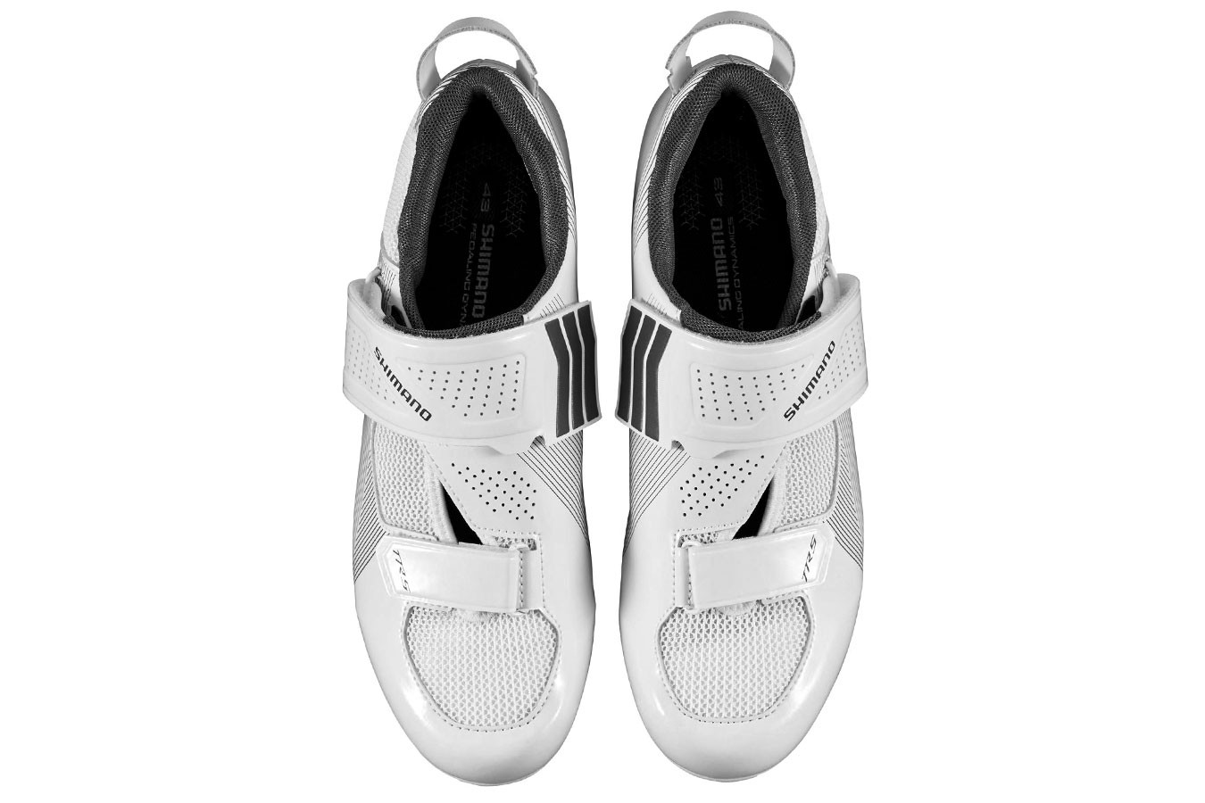 Sapatilha Shimano SH-TR501 para Triathlon reforçada com fibra de vidro, com tecnologia Shimano Dynalast e cabedal em couro sintético + tela.